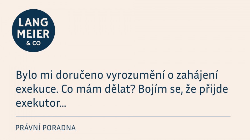 pokud vám soudní exekutor zaslal vyrozumění o zahájení exekuce, byla vám pravděpodobně doručena rovněž s vyrozuměním výzva ke splnění vymáhané povinnosti. Od doručení této výzvy vám běží lhůta 30 dnů ve které, pokud vymáhanou povinnost splníte, uhradíte soudnímu exekutorovi sníženou odměnu a sníženou náhradu hotových výdajů. Je to tedy pro Vás výhodnější a vaše exekuce skončí rychleji. V této situaci tedy doporučuji spojit se se soudním exekutorem (kontakt na něj naleznete na dokumentech) a vymáhanou povinnost splnit. Pokud se nacházíte v situaci, kdy vymáhanou povinnost nemůžete splnit zcela, lze si se soudním exekutorem domluvit splátkový kalendář. Pokud budete splátkový kalendář plnit řádně a včas, nemusíte se neohlášené návštěvy soudního exekutora ve vašem bydlišti bát. V případě jakýchkoliv dalších dotazů se neváhejte obrátit na naší advokátní kancelář.