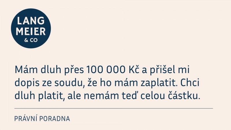 Mám dluh přes 100 000 Kč a přišel mi dopis ze soudu, že ho mám zaplatit. Chci dluh platit, ale nemám teď celou částku. Co mám dělat? Nechci, aby mi byl zablokován účet, potřebuji platit školku, věci pro dceru atd.