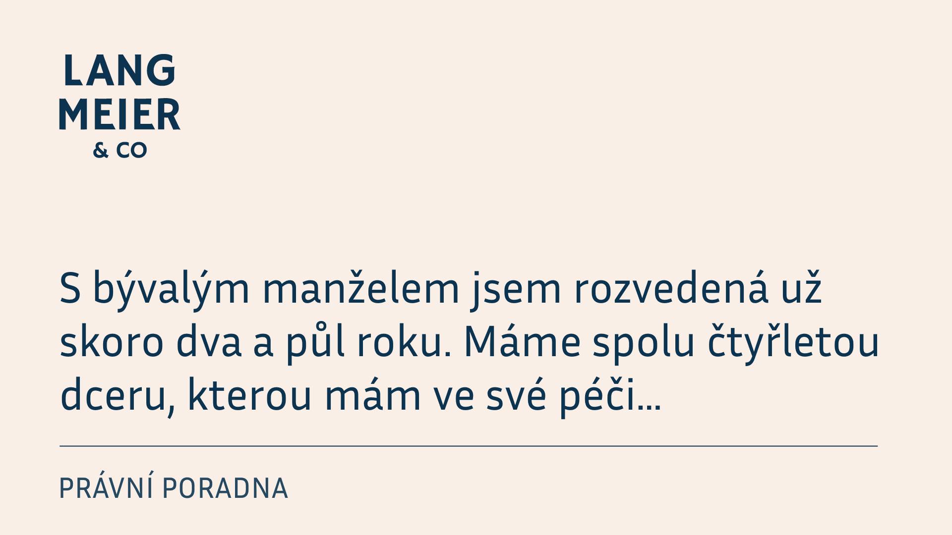 čtyřletou dceru, kterou mám ve své péči. Bývalý manžel přestal před